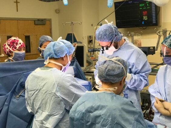 An archival image of transplant surgery at St. Paul’s