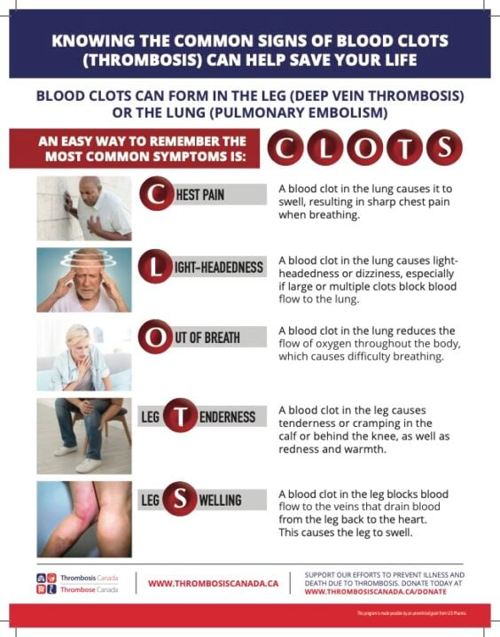 Thrombosis Canada provides easy to read information on their website to help you learn about risks and signs.