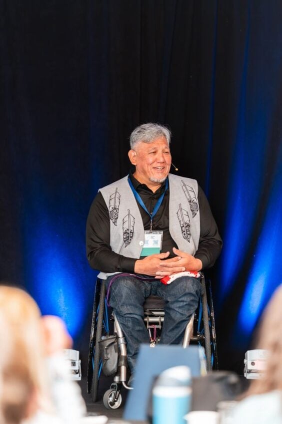 Opening keynote speaker Richard Peter, an Indigenous Paralympian with a spinal cord injury, spoke from lived experience. He spoke about trust, safety, and respect and described barriers Indigenous people still face. He explained how working directly with Indigenous communities can improve care and shared how sport supports young Indigenous athletes.
